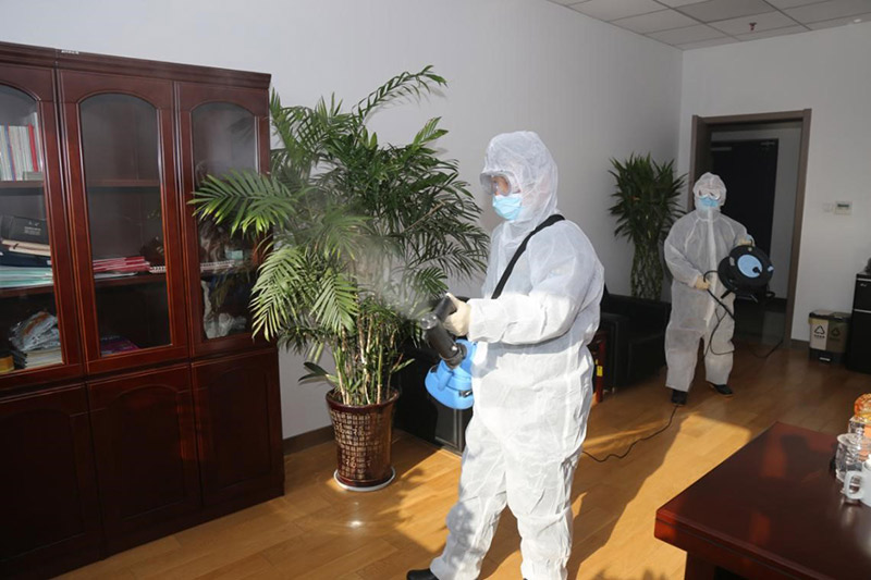 伴隨著轟鳴的馬達(dá)聲,一個個身掛專業(yè)消殺設(shè)備、身著消殺服的消殺人員,忙碌地穿梭在大堂、辦公室、食堂等公共區(qū)域,用熟練的技術(shù)對重點環(huán)節(jié)、重點部位進(jìn)行著全面徹底的清洗與消毒。這支消殺隊是為了適應(yīng)常態(tài)化疫情防控需要,由公司領(lǐng)導(dǎo)親自率隊,組織相關(guān)人員遠(yuǎn)赴青島學(xué)習(xí)調(diào)研后回錫組建的,配備了專業(yè)的電噴槍、氣噴槍和全套防護(hù)用具,并專門組織人員定期開展“以干代練”活動,現(xiàn)已初步具備了專業(yè)消殺能力。