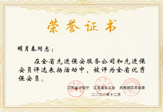 明月春同志榮獲“全省優(yōu)秀保安員”,