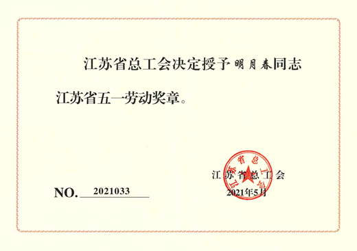 被授予“江蘇省五一勞動獎?wù)?rdquo;