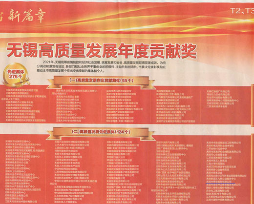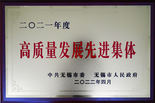 公司榮獲無錫市“2021年度高質(zhì)量發(fā)展先進集體”稱號
