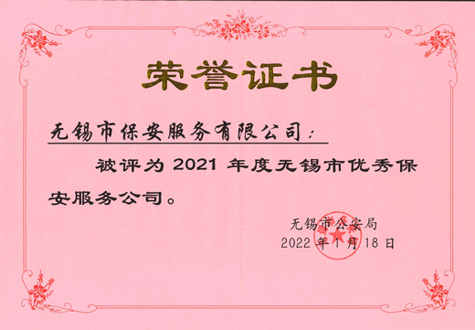 在6月7日召開的市保安協(xié)會第三屆第三次會員代表大會上,公司榮獲“2021年度無錫市優(yōu)秀保安服務(wù)公司”稱號,黃皆迎、張志清、明月春三名隊員榮獲“2021年度無錫市優(yōu)秀保安員”稱號。