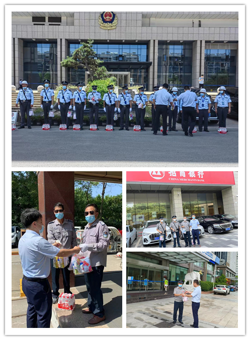 為進(jìn)一步做好常態(tài)化疫情防控形勢下的高溫天氣防暑工作,切實保障員工身體健康,近日,公司由部門領(lǐng)導(dǎo)帶頭深入基層一線,把夏日飲品、花露水、風(fēng)油精等防暑降溫用品送到保安隊員手中,叮囑隊員在夏季戶外工作中要做好防暑降溫工作,確保平安度夏。送清涼活動為堅守在一線的隊員送去一份夏日清涼,帶去一份實實在在的關(guān)切,保安隊員們也紛紛表示,將以更加嚴(yán)格的工作標(biāo)準(zhǔn)、更加飽滿的工作熱情投身工作,為常態(tài)化疫情防控和維護(hù)社會安全穩(wěn)定貢獻(xiàn)自己的力量。