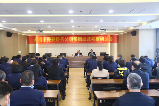 4月24日下午,公司召開實施績效考核動員會,會議明確2020年度重點工作目標任務,對考核工作進行動員和部署。公司領導向第一、二分公司和技防分公司下發(fā)目標責任書,并就績效考核工作的推進提出三點要求:一是思想上真正重視起來,通過考核,提高成績、工作效率和工作質(zhì)量;二是工作上真正認真起來,提高責任意識,積極參與到績效考核工作中去;三是考評上真正嚴肅起來,各部門要嚴肅認真地對待績效考核這項工作。會議由公司常務副總經(jīng)理主持,各分公司、各部門共計六十余名員工參加會議。